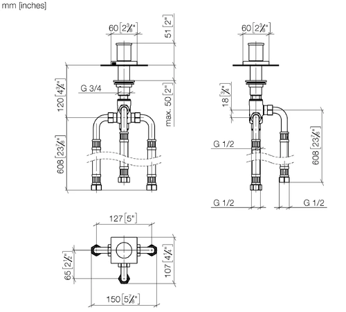Dornbracht two-way diverter for bath rim or tile rim installation