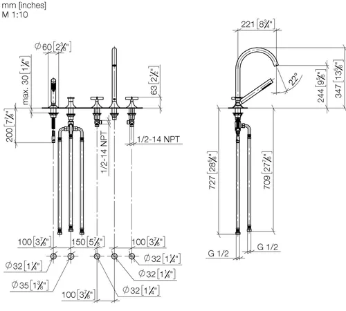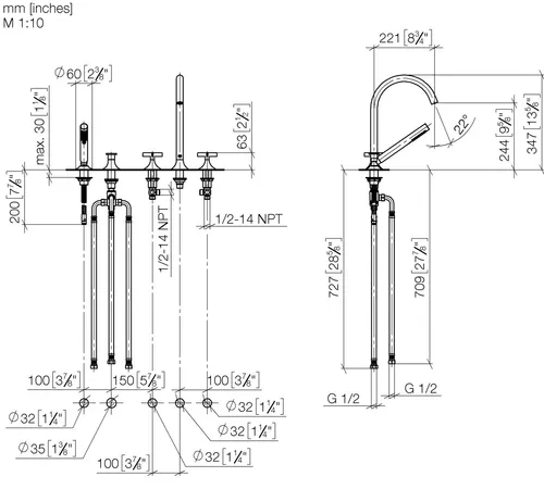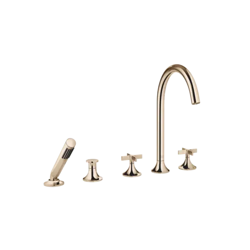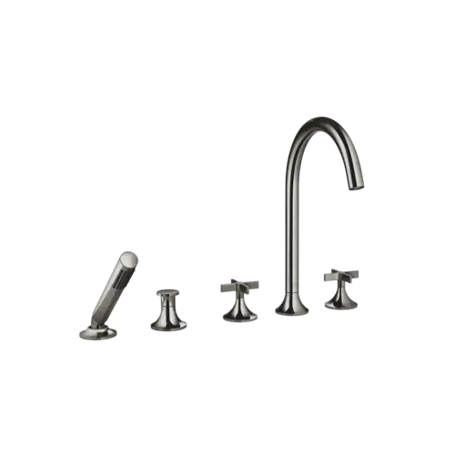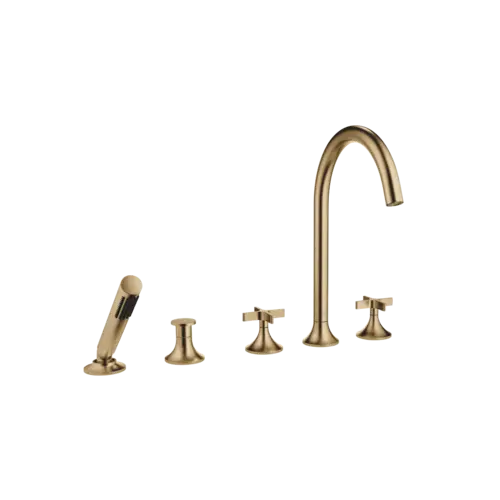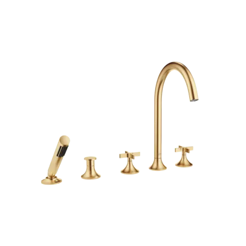 Dornbracht VAIA five-hole bath mixer, bath rim installation, automatic diverter, cross handle, projection 220mm