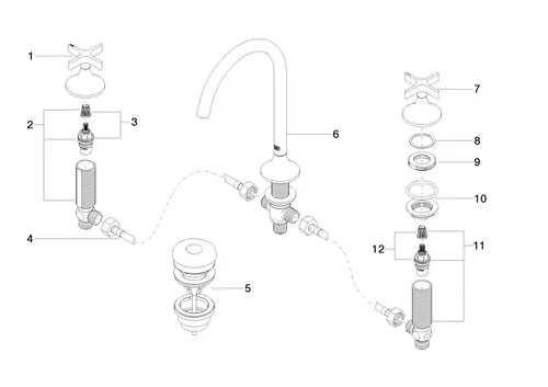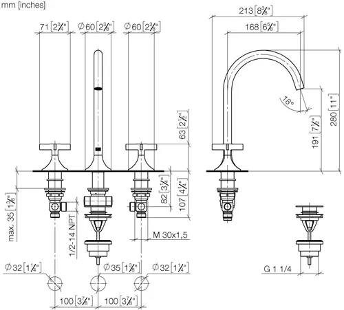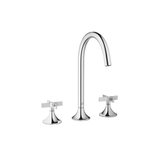 Dornbracht VAIA three-hole washbasin mixer with pop-up waste, cross handle, projection 168mm