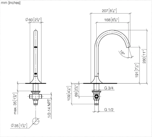 Dornbracht VAIA washbasin pedestal spout without drain set, projection 168 mm