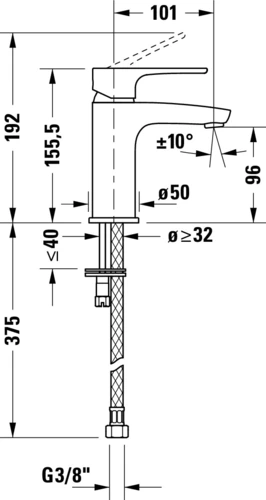 Duravit B.1 single-lever basin mixer S, FreshStart, Minusflow, projection 101mm, without drain set