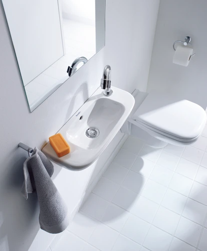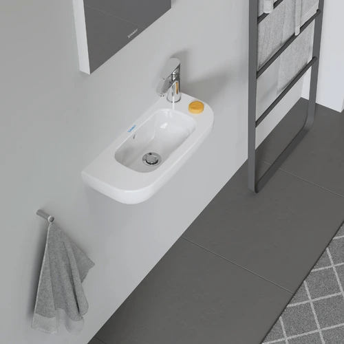 Duravit D-Code hand-rinse basin, with tap hole on the right, with overflow, 500x220x135mm, white high gloss