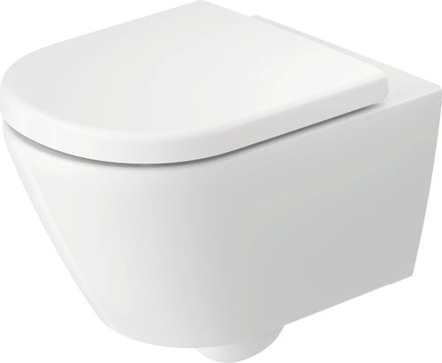 Duravit D-Code wall-hung toilet, pre-assembled hinged base, concealed fastening, deep flush, rimless, 370x540x360mm, white high-gloss