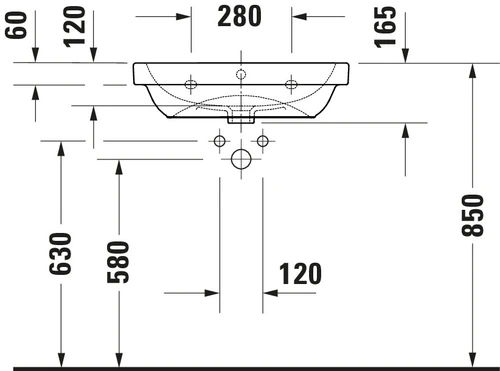 Duravit D-Code washbasin, with tap hole, with overflow, 600x460x165mm, white high gloss