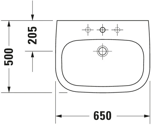 Duravit D-Code washbasin, with tap hole, with overflow, 650x500x180mm, white high gloss