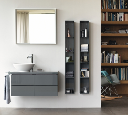 Duravit L-Cube console for countertop basins and built-in washbasins, top thickness 30mm, size 1000x550mm, with 2 cut-outs.
