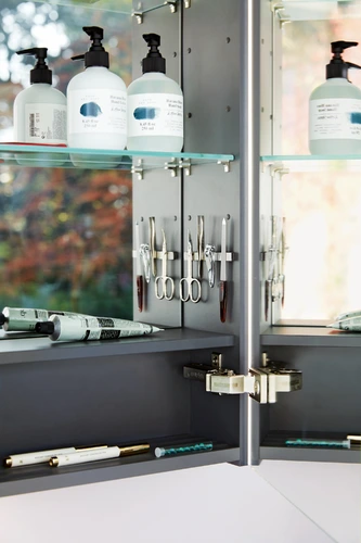 - the magnetic strip can be attached individually to cabinet side, wall or mirror via a mirror adhesive tape