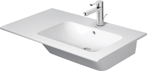 Duravit ME by Starck Furniture wash basin 83 cm, without tap hole, with overflow, with tap hole bench, asymmetrical, basin right