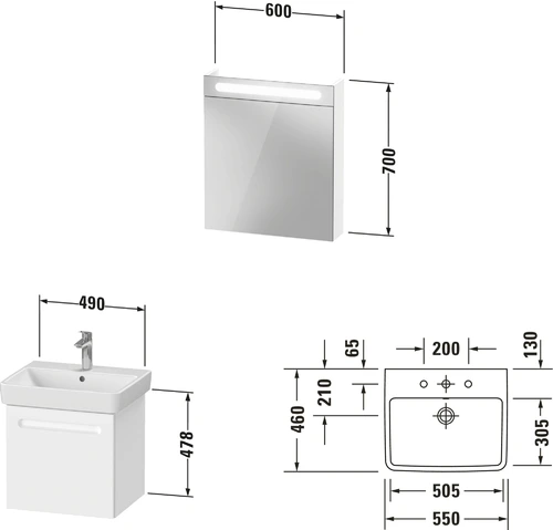 Duravit No.1 furniture set 550, incl. washbasin, vanity unit, mirror cabinet with left-hand stop, internal drawer, siphon cut-out