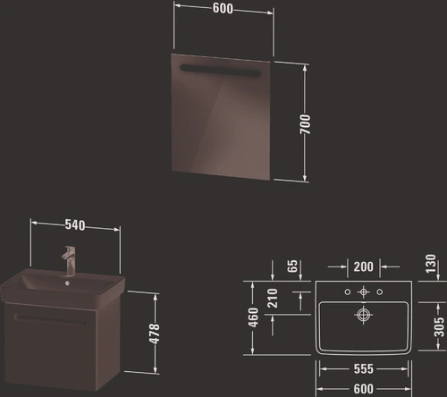 Duravit No.1 furniture set 600, incl. washbasin, vanity unit, mirror, inner drawer, siphon cut-out