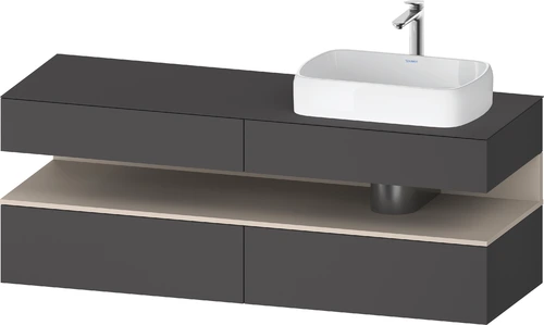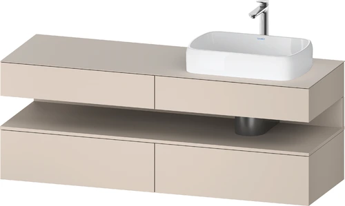 Duravit Qatego console vanity unit, 2 drawers, 2 drawers, cutout right, 1600x550x600mm, niche taupe supermatt