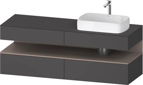 Duravit Qatego console washbasin base, 2 drawers, 2 drawers, cutout right, 1600x550x600mm, niche basalt matt