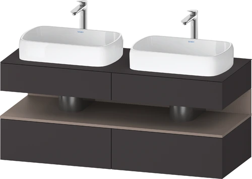 Duravit Qatego console washbasin base, 2 extensions, 2 drawers, 2 cutouts, 1400x550x600mm, niche basalt matt