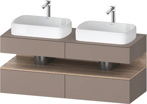 Duravit Qatego console washbasin base, 2 extensions, 2 drawers, 2 cutouts, 1400x550x600mm, niche oak marbled