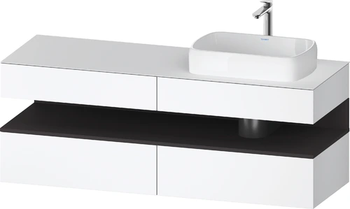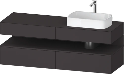 Duravit Qatego console washbasin vanity, 2 drawers, 2 drawers, cutout right, 1600x550x600mm, niche graphite supermatt