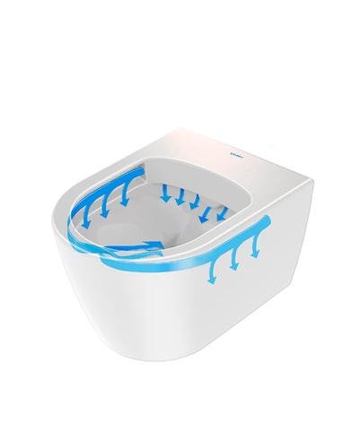 - Duravit Rimless®: open flushing rim with dynamic water flow.