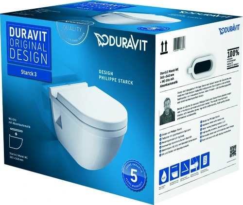 Duravit Starck 3 SET wall-hung toilet incl. WC seat with soft-closing mechanism, white