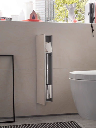emco asis module plus, WC module - flush-mounted, H:658mm, with compartment for toilet paper and integrated toilet brush set, door stop left, paper removal lateral