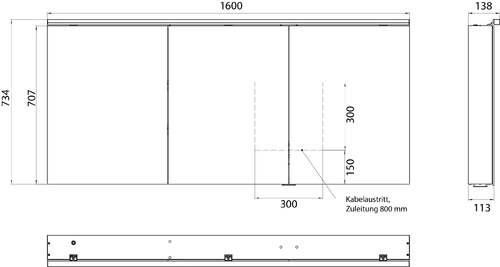 emco flat 2 classic LED light mirror cabinet with top light, 3 doors, 1600x711x113mm