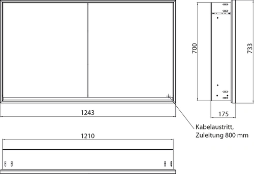 - Dimensions (WxDxH): 1243 x 175 x 733 mm