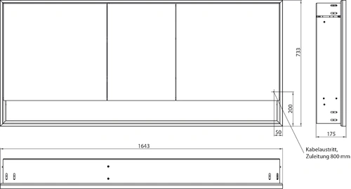 - Dimensions (WxDxH): 1643 x 175 x 733 mm