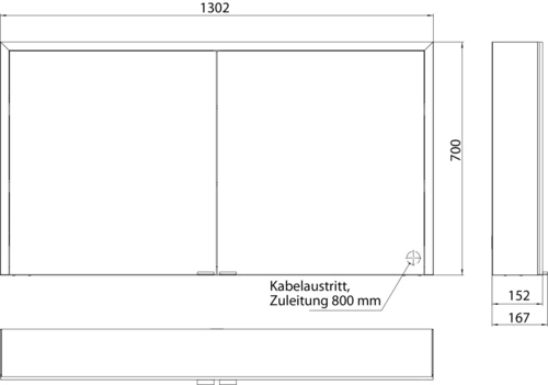 - Dimensions (WxDxH): 1302 x 167 x 700 mm
