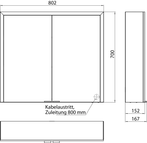 - Dimensions (WxDxH): 802 x 167 x 700 mm