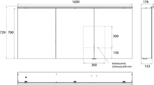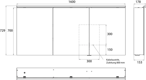 emco pure 2 Classic LED Light mirror cabinet with top light, 3 doors, 1600x711x153mm