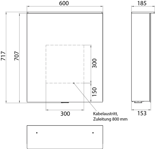emco pure 2 design LED light mirror cabinet with light panel, 1 door hinges changeable, 600x711x153mm