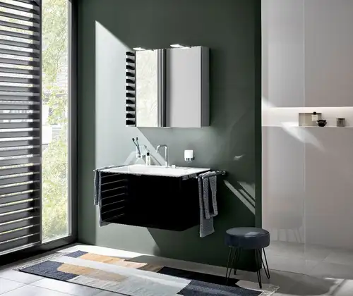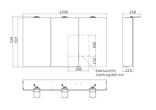 emco pure 2 Style LED Light mirror cabinet with 2 top lights, 3 doors, 1200x726x258mm