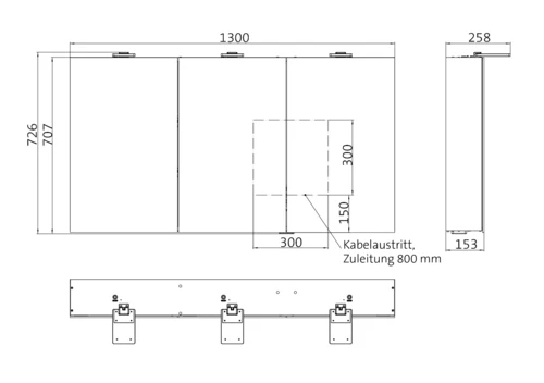- 1300 x 726 x 258 mm