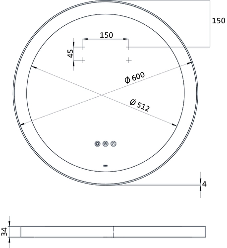 emco round black light mirror, diameter 600mm, with LED lighting, black