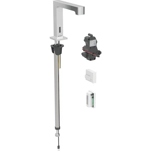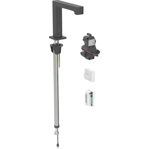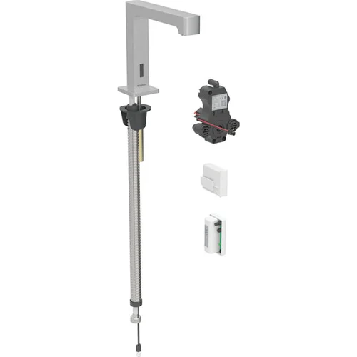 The Geberit Brenta basin tap comes with basin tap with infrared sensor and connection hose, control electronics, functional unit, battery for generator operation, key for jet regulator and mounting material. It offers you a robust, efficient and user-friendly solution for your washbasins.
