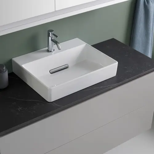 Aesthetics meets functionality with the Geberit One countertop washbasin.