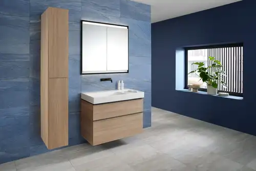 The special feature of this mirror cabinet is its ComfortLight. The LED lighting offers you infinitely adjustable lighting scenes - from soft orientation light to bright daylight. The functions can be conveniently triggered via a touch sensor.