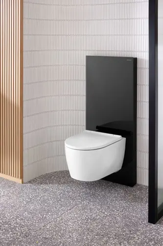 As a wall-hung WC, the Geberit One Turboflush offers flexible height adjustment of the ceramic top edge from 41 to 45 cm, allowing you to find the perfect position for your comfort. The rimless design combined with advanced TurboFlush flush technology provides an efficient and hygienic flush that will make your WC shine.