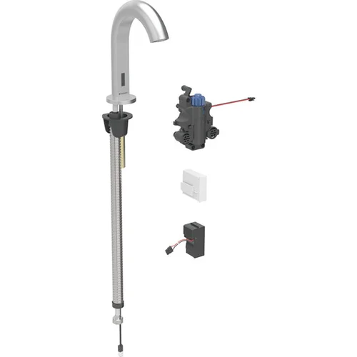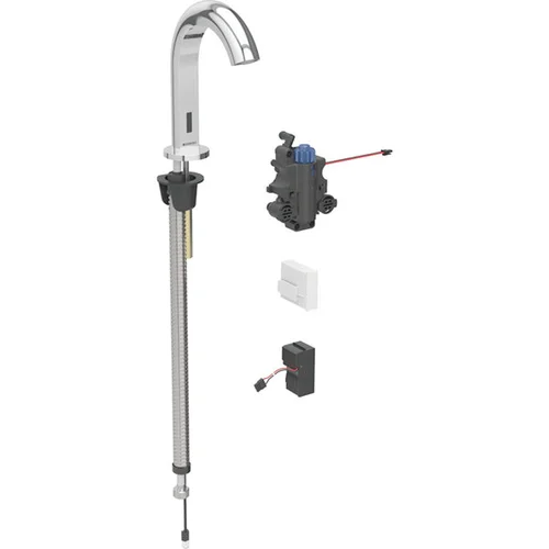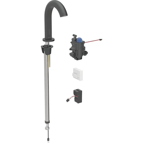 The scope of delivery of the Geberit Piave basin mixer includes the mixer itself, the control electronics, the functional unit, the power supply unit, a key for the aerator and the mounting material. With this comprehensive package, you are perfectly equipped for an improved and more sustainable washing experience.