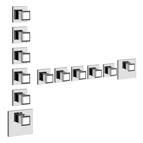 Gessi Eleganza, ready-mounted set, for high-performance thermostat with 5 separately opening valves for flush-mounted box, single outlet