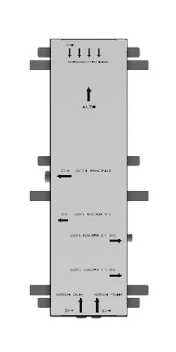 Gessi flush-mounted unit, digital control with 1 main output for Binario ceiling system and 3x outputs for wall outlets