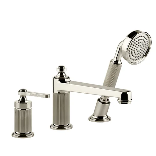 Gessi Venti20 3-hole bath mixer, with spout, diverter, hose and hand shower, 2-way, projection 189mm, bath rim mounting