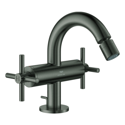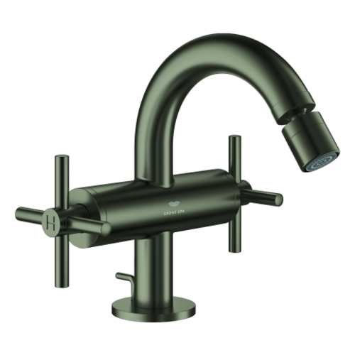 Grohe Atrio Private Collection single-hole bidet mixer, projection 126mm, with cross handles, pop-up waste