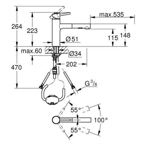 Grohe Concetto single-lever sink mixer, projection 202mm, medium-high, pull-out, swivelling