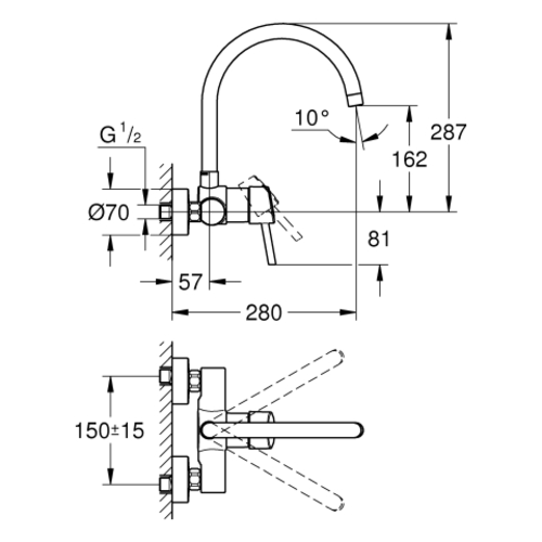 Grohe Concetto single-lever sink mixer, wall-mounted, 280 mm projection, swivelling