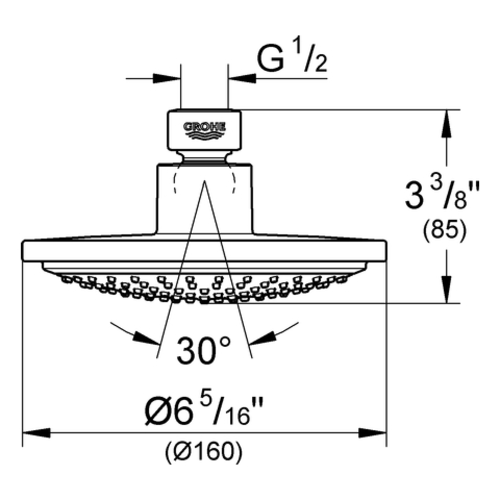 Grohe Euphoria Cosmopolitan 160 overhead shower, GROHE EcoJoy constant flow diverter