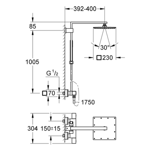 - GROHE SafeStop Plus safety lock at 38°C and optionally applicable temperature limit stop at 43°C