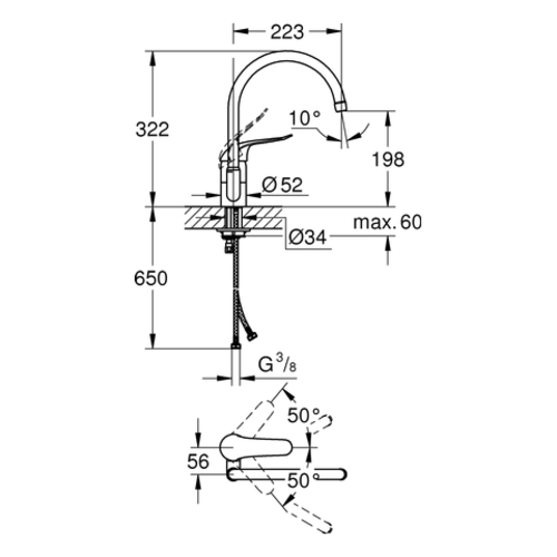 Grohe Euroeco Special single-lever sink mixer, 223 mm projection, swivelling