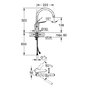 - swivelling pipe spout, swivel range selectable: 0° / 150° / 360°