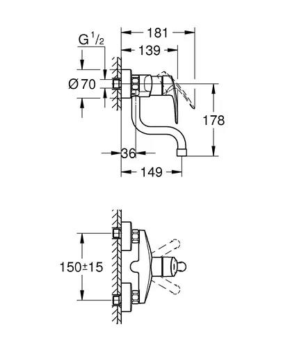 Grohe Eurosmart single-lever sink mixer, wall-mounted, projection 149mm