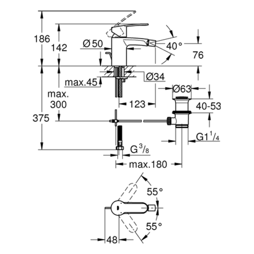 Grohe Eurostyle Cosmopolitan single-lever bidet mixer, 123mm projection, pop-up waste