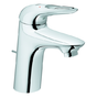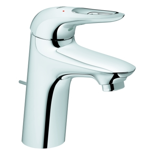 Grohe Eurostyle single-lever basin mixer, S-size, 110mm projection, pop-up waste, Grohe Zero, open lever handle